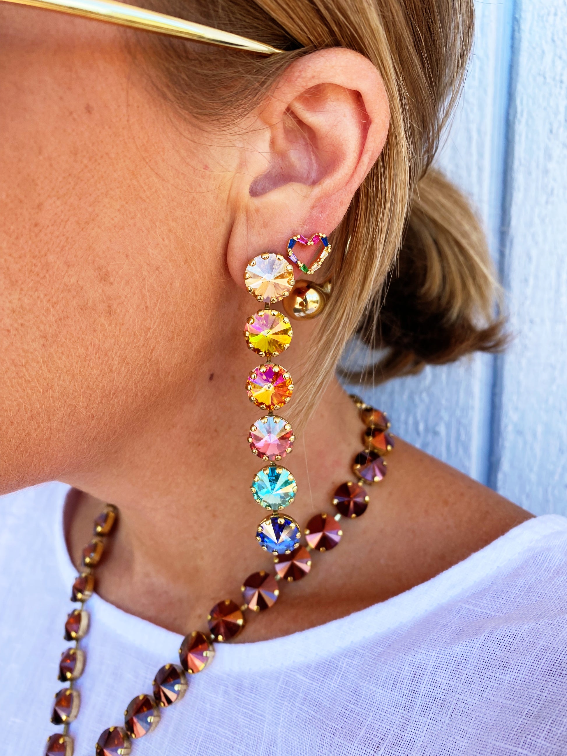 Pop of color to your outfit with our Lilibet Earrings in Watermelon Mix! These 3.25" long earrings feature antique gold plating and a hypoallergenic surgical steel posts, making them both stylish and gentle on your ears. Handmade in Canada using high-quality brass, these earrings are sure to make a statement.