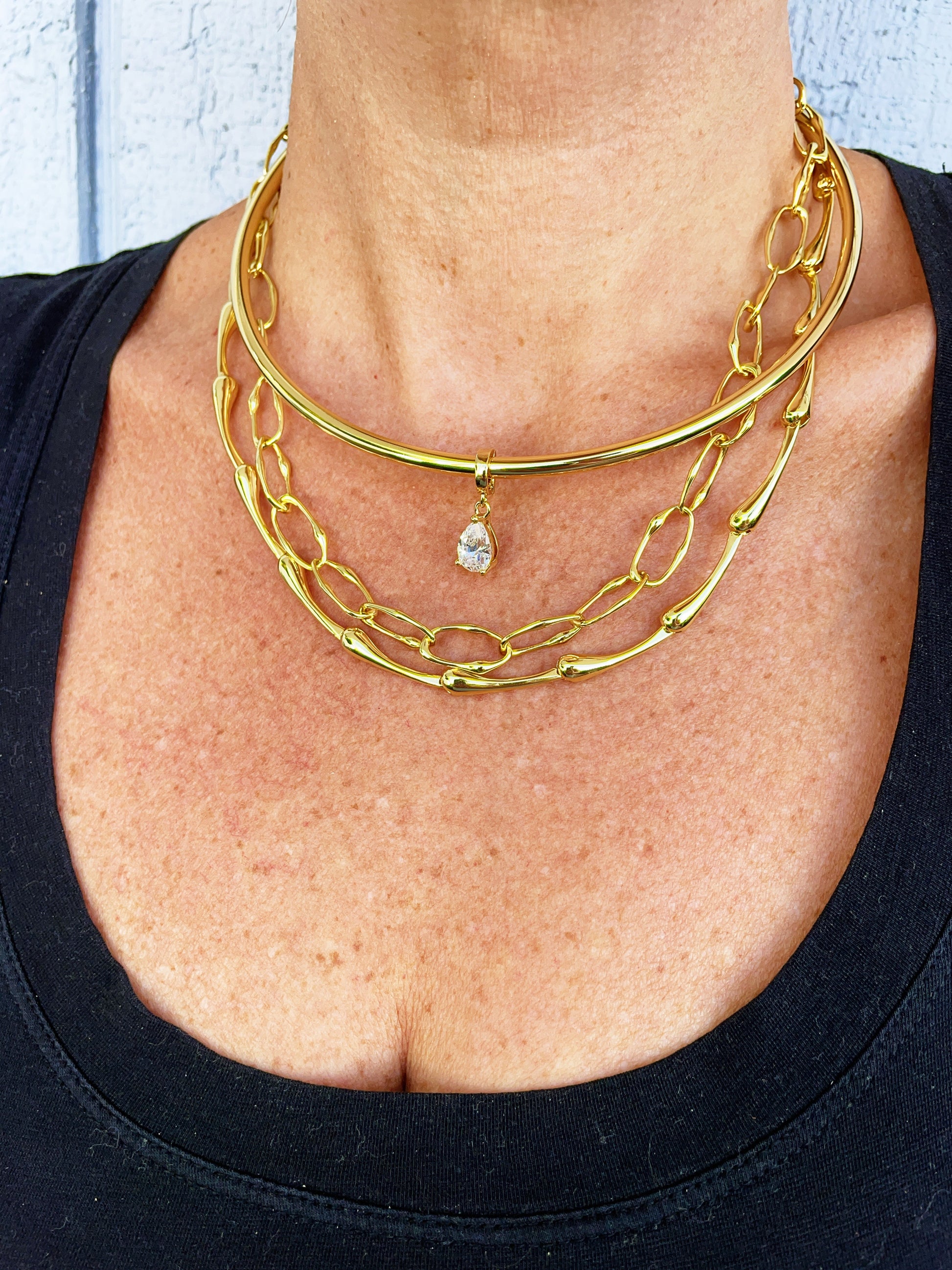 The Pear Cut Necklace Cuff combines sleek design with versatility, featuring a removable pendant that allows you to customize your look. Its cuff style provides a comfortable yet secure fit around the neck, making it an elegant choice for both everyday wear and special occasions. This necklace effortlessly adapts to your style, offering both statement appeal and practical flexibility.