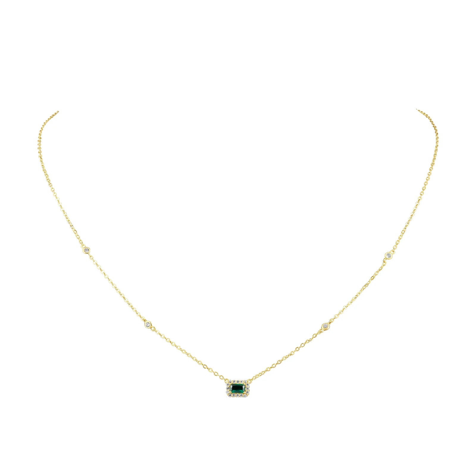 The Nora Emerald Necklace is the perfect necklace to add that elegant sparkle to any look! The gold chain and Emerald CZ Stones compliment each other perfectly, you can wear it solo or layer it with other gold chains for the perfect timeless look!