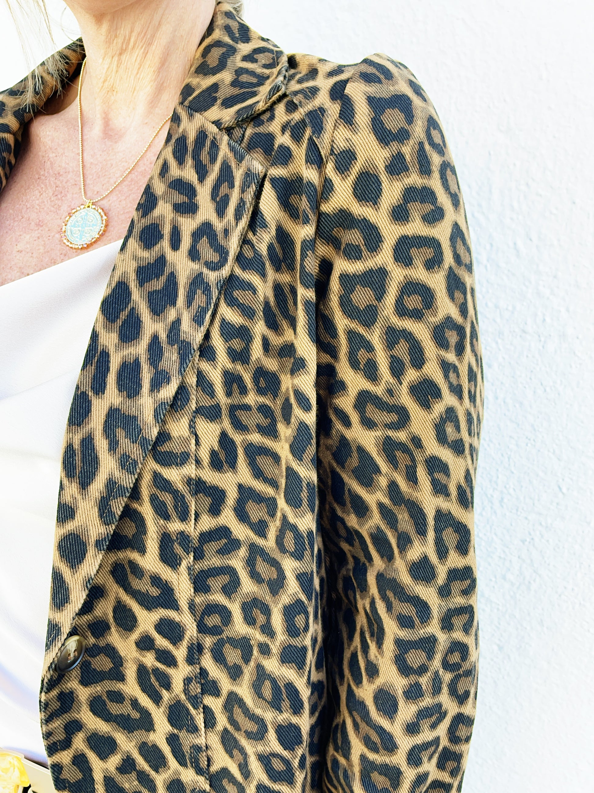FRENCH LEOPARD LONG JACKET TIMELESS VINTAGE WASHED HIDE POCKET