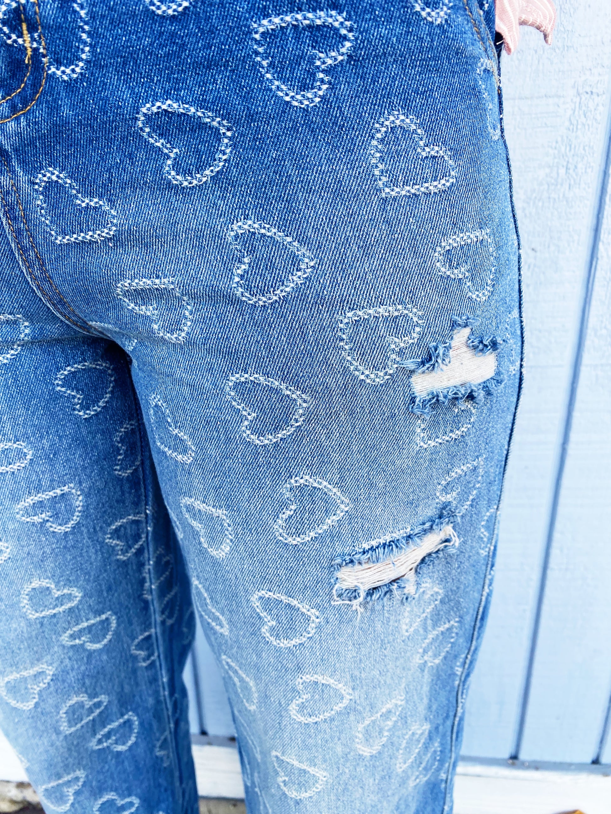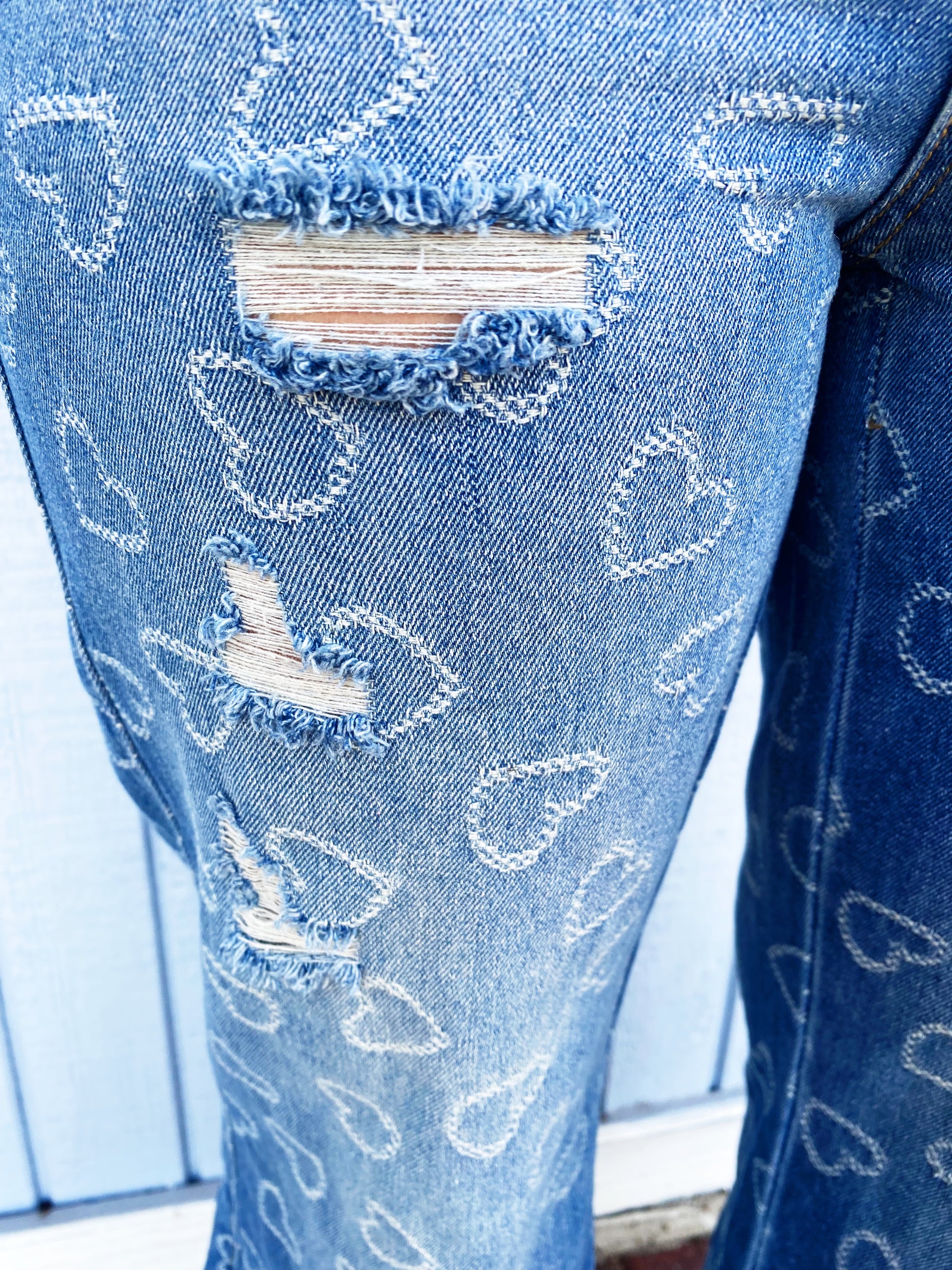 Heart Pattern Washed Denim Pants * FINAL SALE