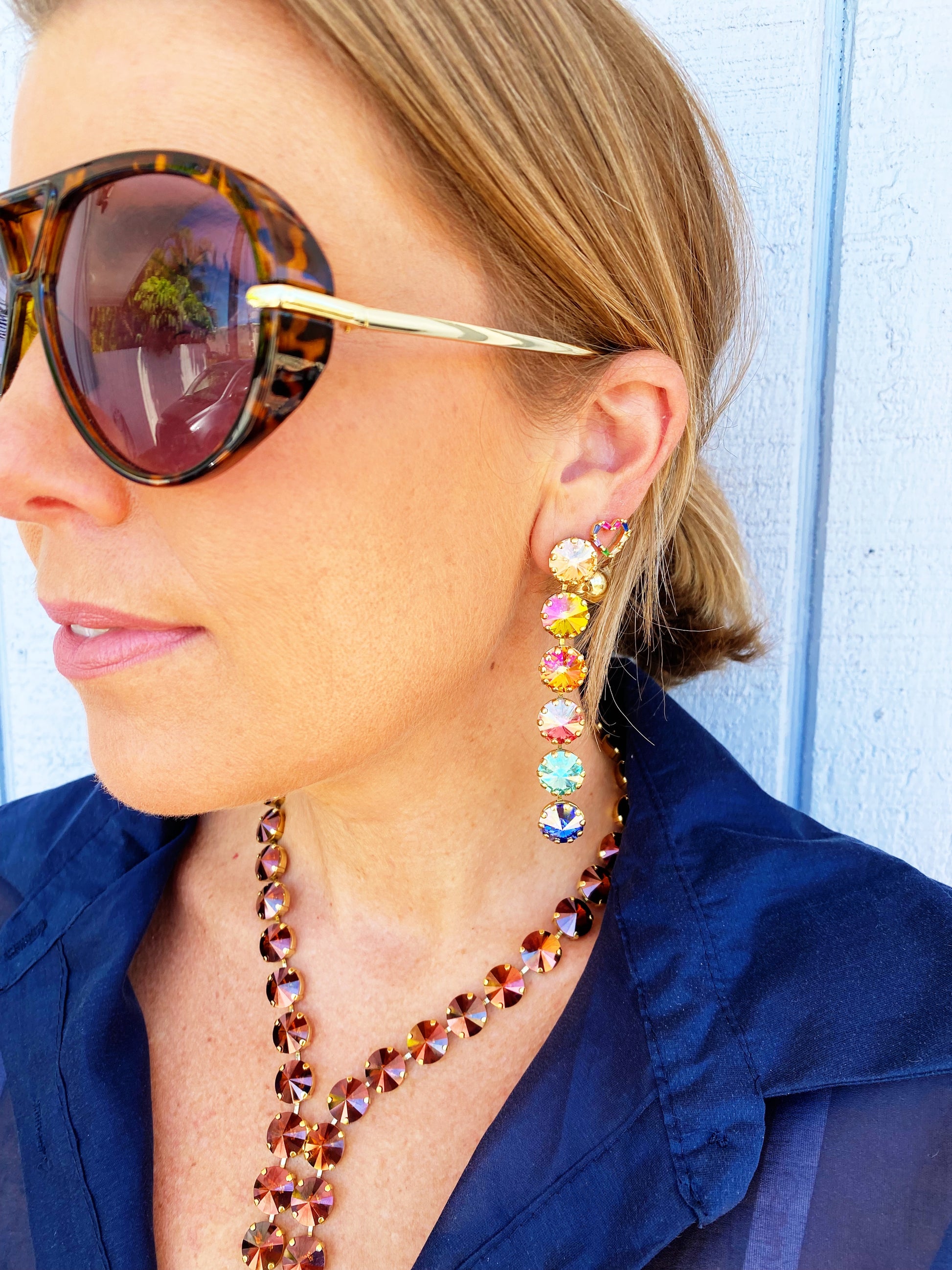 Pop of color to your outfit with our Lilibet Earrings in Watermelon Mix! These 3.25" long earrings feature antique gold plating and a hypoallergenic surgical steel posts, making them both stylish and gentle on your ears. Handmade in Canada using high-quality brass, these earrings are sure to make a statement.