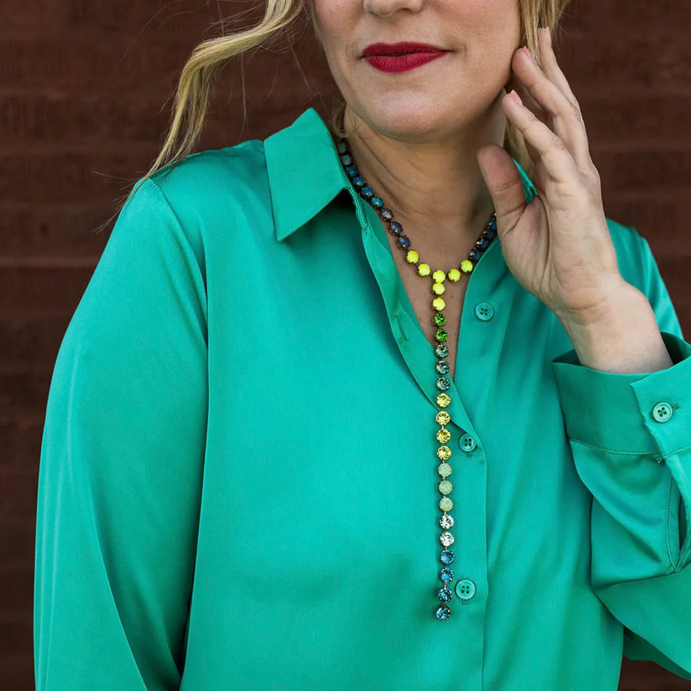 Make a fashion statement with the Mini L.A. in POP! This gorgeous necklace features an antique gold plating brass base metal, with attention-grabbing 8mm crystals for an extra pop of sparkle. Bring a touch of luxe to your look that's sure to turn heads - after all, 15" with a 5" drop is a lot of real estate to work with! And with esteemed craftsmanship from Canada, you can shine bright with confidence. Shine on!