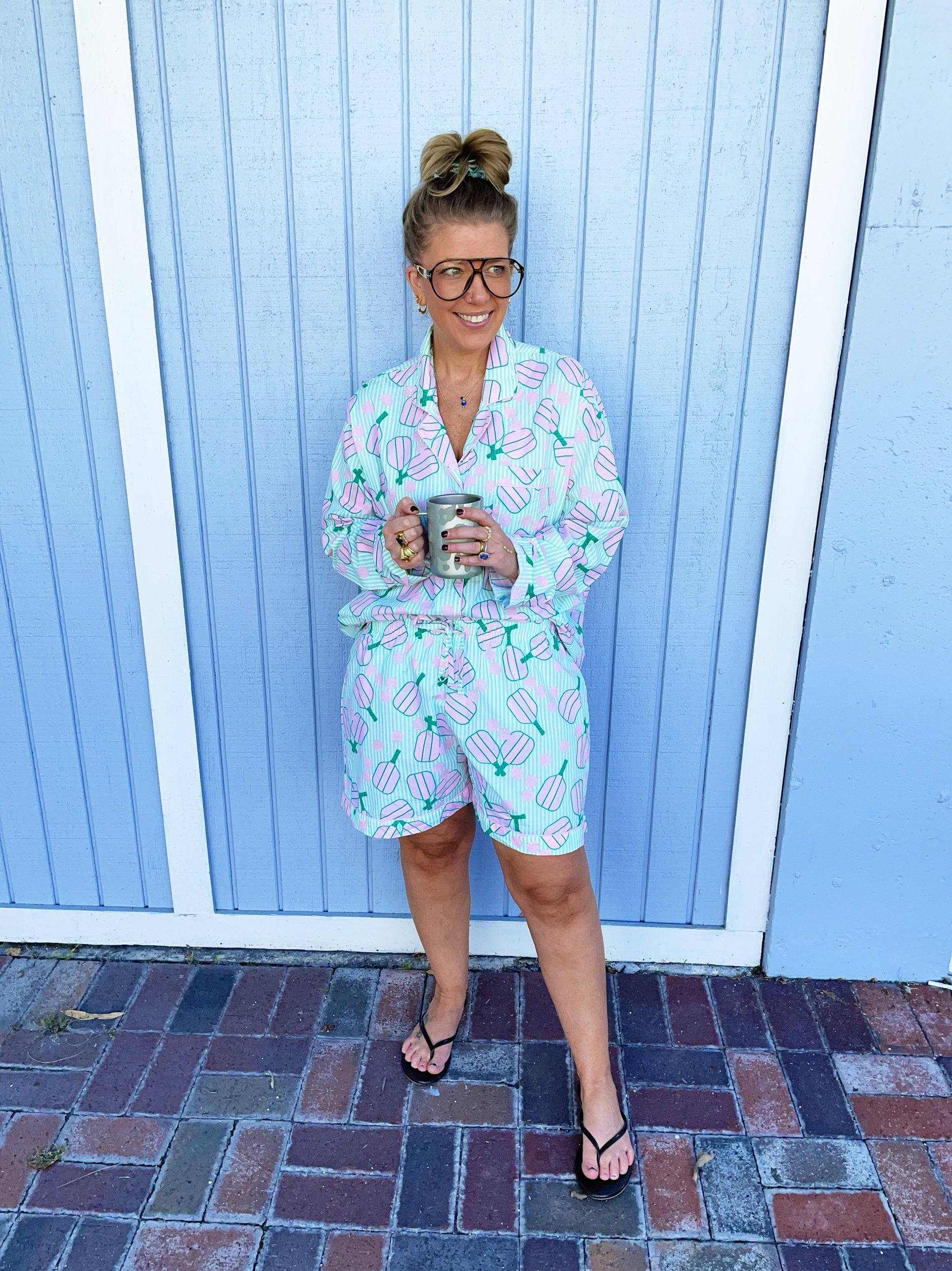Pickleball Stripe Pajama Set with Shorts & Long Sleeve Top