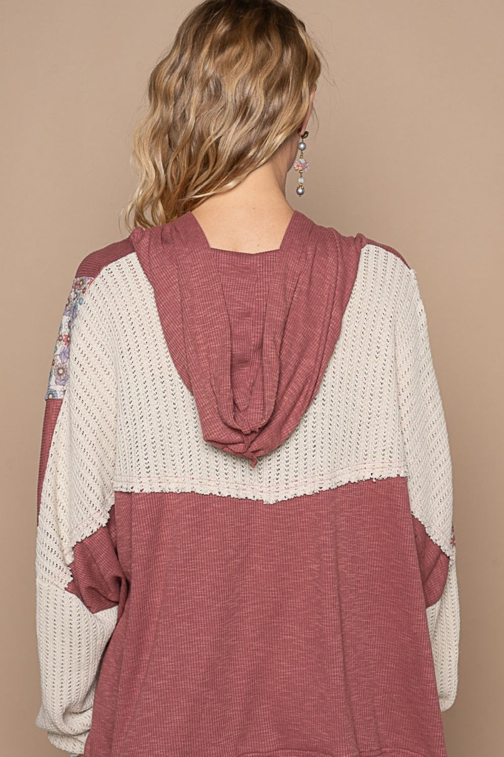 Long Sleeve Floral Peace Patch Ribbed Hoodie