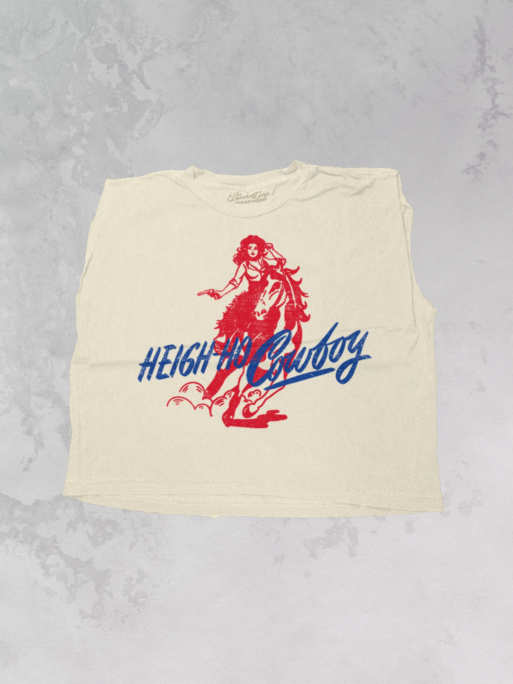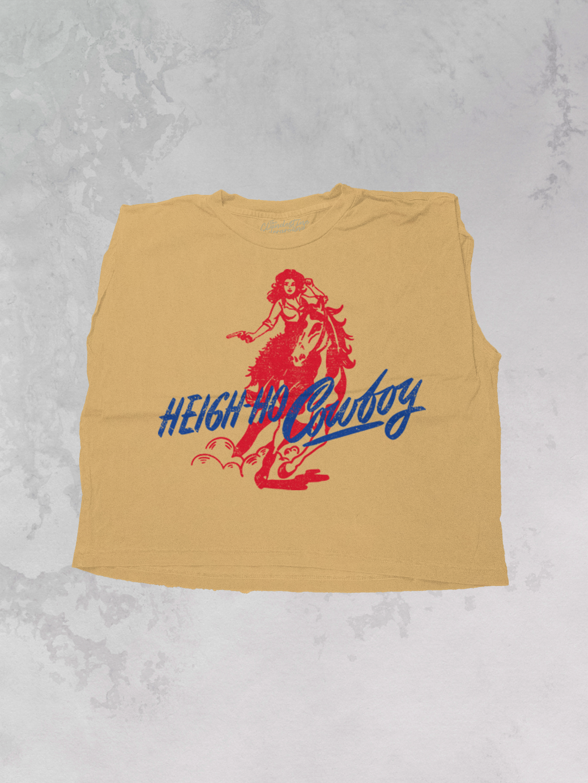 Underground Original Design: Heigh-Ho-Cowboy, Western Vintage Cropped Muscle Tank